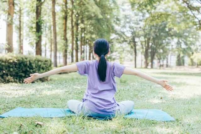 過度な運動はかえって疲労がたまってしまうため、散歩やヨガなど、体に負担の少ない運動を行います。